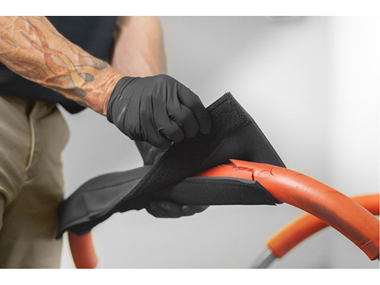 Do you have a cracked, pitted, or torn windshield stand cover? The uneven surface can make it difficult to do your work or end up being a costly situation if the glass were to fall and break. A quick and easy fix is the Equalizer® Stand-Aid™. No need to remove the old covers, just wrap and secure Stand-Aid™ with the Velcro® tab over the existing ones and you are good to go! You can also remove and reuse elsewhere in a snap. Made of a 5 mm neoprene fabric with sharkskin and a two inch wide industrial Velcro® strip with a durable stitch.