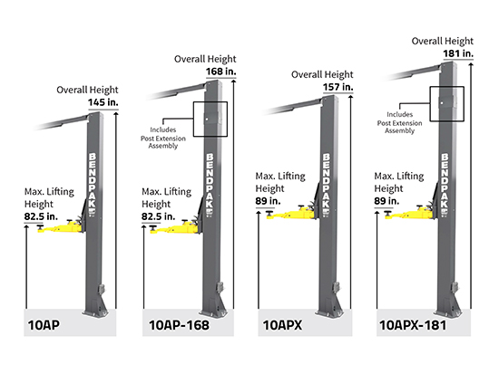 BendPak 10APX Tall-Rise BiMetric 10,000-lb Capacity 2-Post Lift